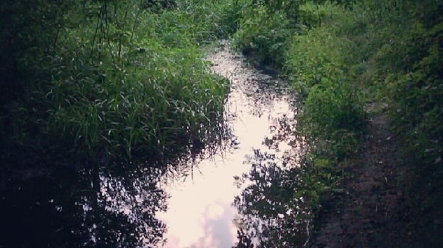 Если двигаться от «яйца» немного левее, то можно выйти к болотам. Видимо, раньше это были пруды. Под ногами влажная почва. По ней видно – недавние следы тут только собачьи. Чуть дальше, правда, видно еще след от велосипеда. Значит, люди тут появляются редко.