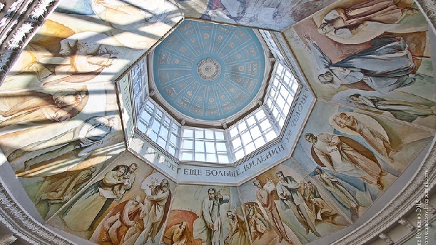 Главный корпус был построен в 1953 г. Внутреннее пространство напоминает храм, расписанный фресками. Все ученые довольно узнаваемы. Фрески созданы...