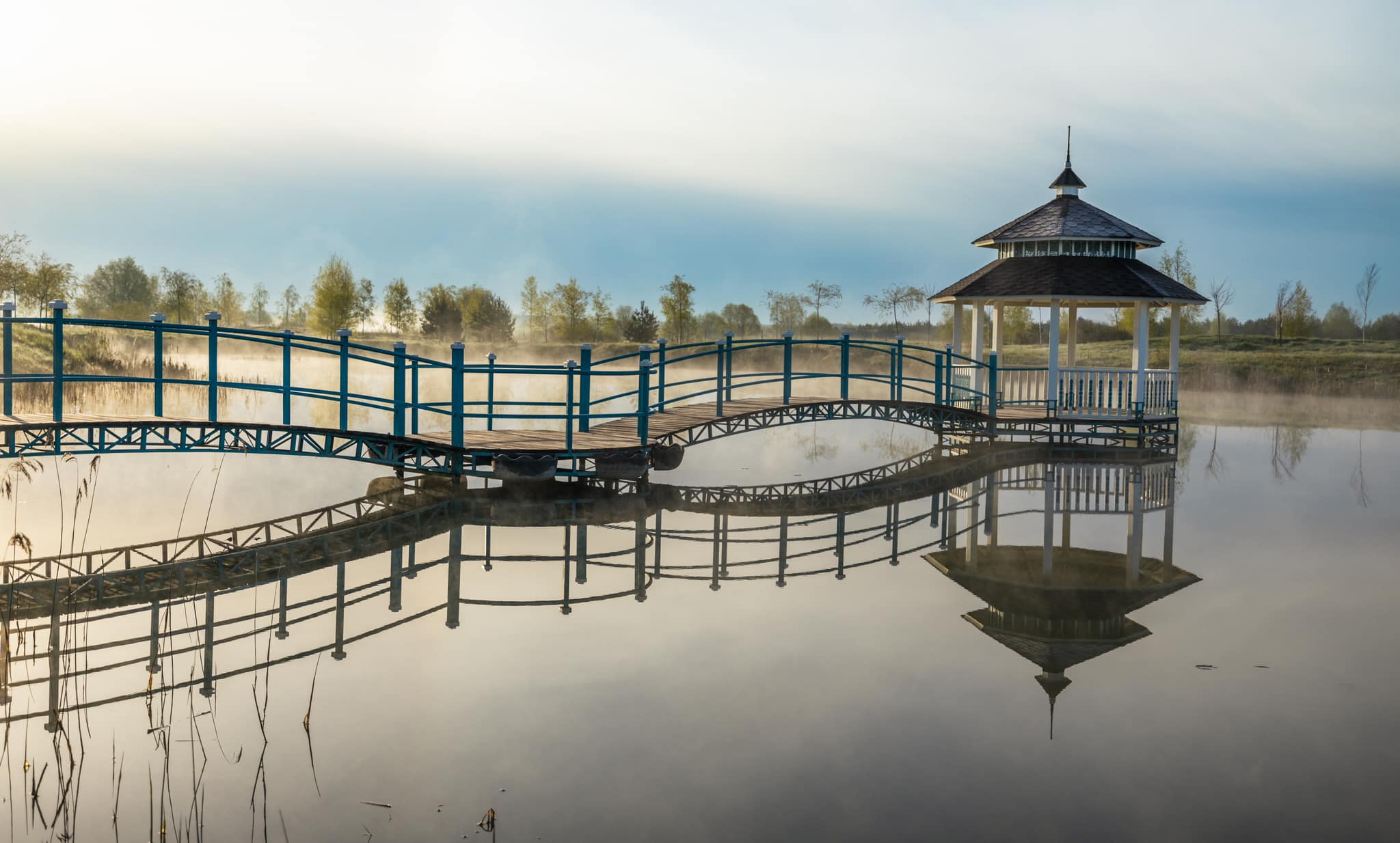 Далее едем в парк «Остров Сакуры» в поселке Володарка. Парк был открыт в мае 2019 года на берегу реки Рось. На территории в 1,6 гектаров высажено около 3,5 тысячи различных деревьев, кустов и цветов, а также есть большое количество интересных инсталляций и зоопарк.