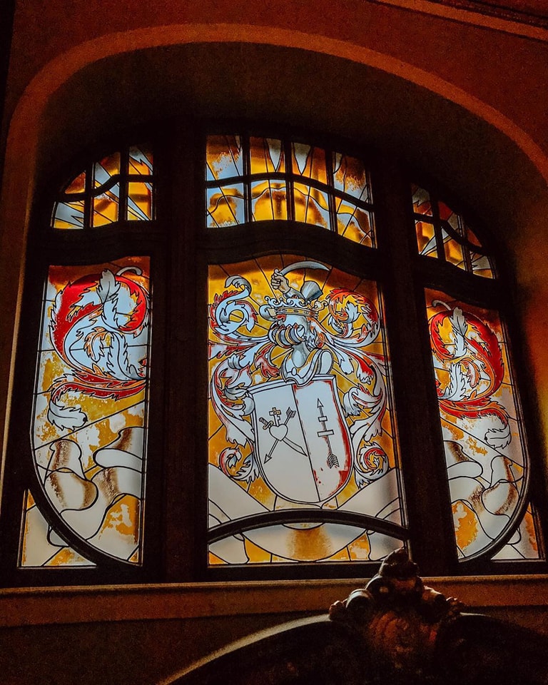 - витраж с семейным гербом;