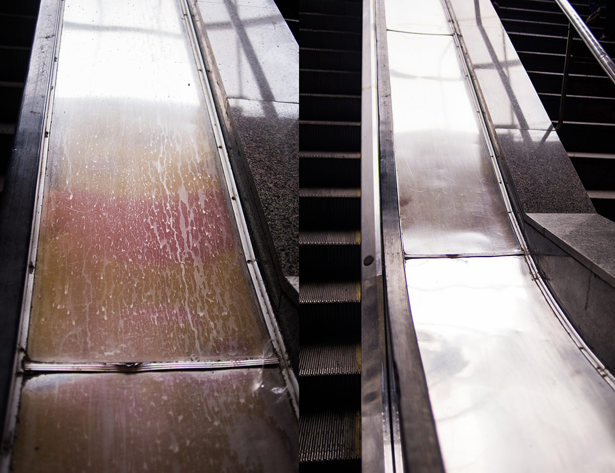 В результате акции чистоты компании «ИНВАЙТ», стены переходов очищены от копоти, дождевых подтеков и граффити; помыты подвесные потолки; поручни ступеней на выходе из переходов очищены от жевательных резинок и других сторонних предметов, вымыты сами ступени, а также эскалаторы в переходе с выходами на улицу Михайловскую.