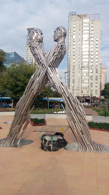 Скульптура символизирует мужское и женское начала. Это два силуэта, которые обращены лицами друг к другу.