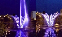 Вчера вечером, 26 мая, в Киеве на Русановском канале в тестовом режиме начал свою работу фонтан с подсветкой.