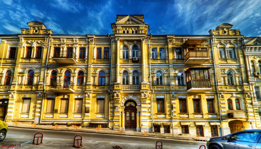 Протягом 1 849–57 років Микола Лєсков жив в родині свого дядька — професора Київського університету С.П.Алферьева в будинку на місці нинішнього № 11 по вулиці Малій Житомирській. Тобто будинок, в якому Лєсков дійсно жив, до наших днів не зберігся. Прибутковий будинок архітектор В.Ніколаєв побудував в 1893 році.